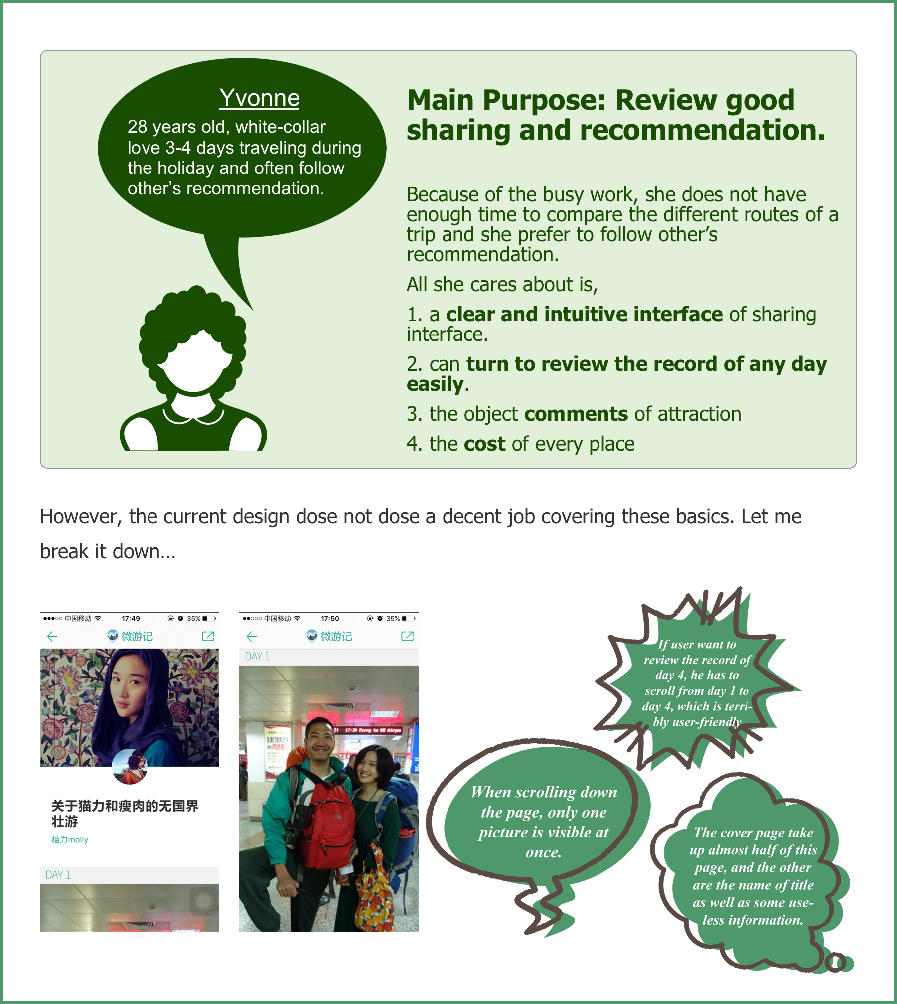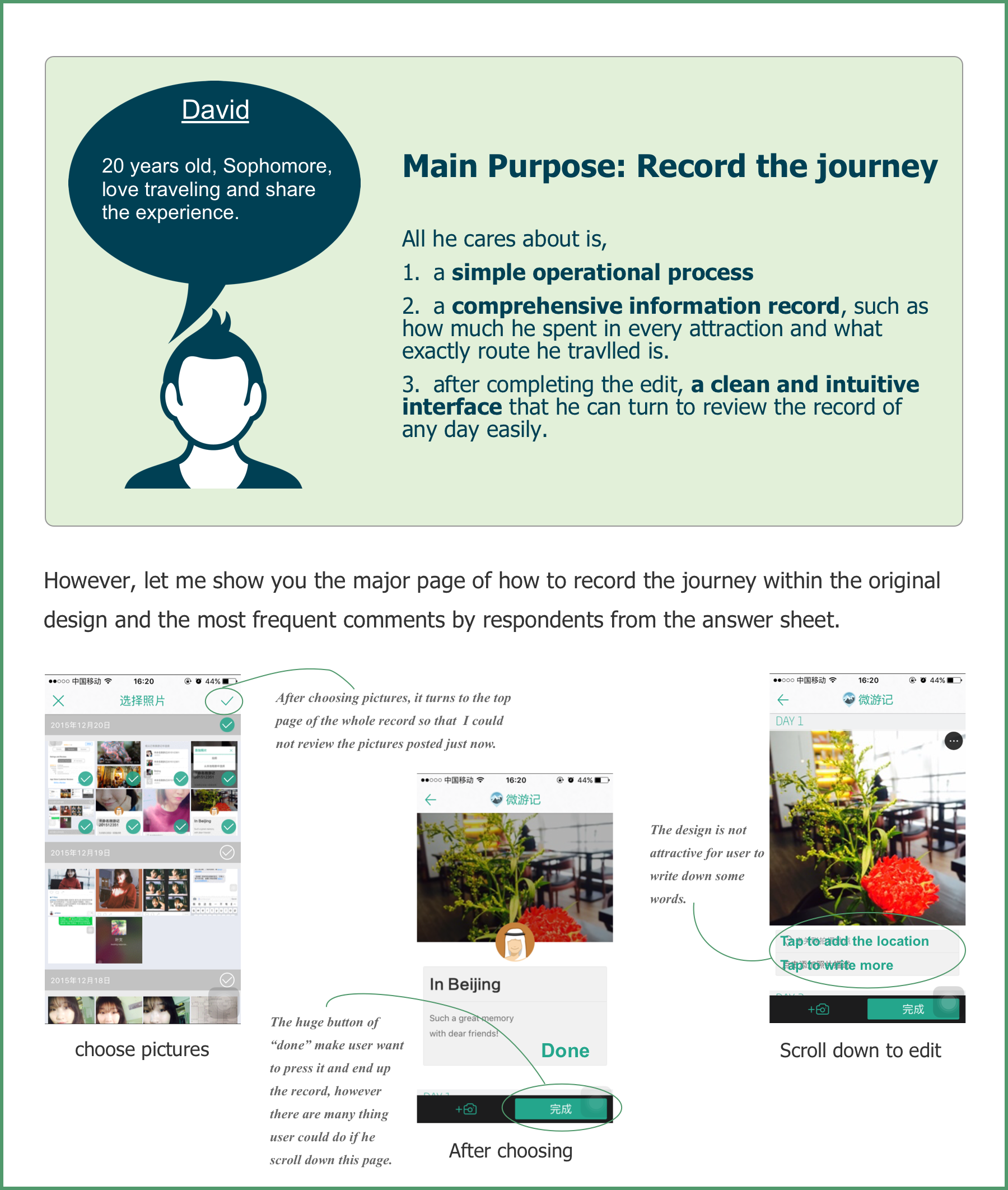 It should be a perfect application for people to keep the good memories during traveling. However, because of the clunky and illogical design, many people can not complete a log and remove it after using it several times.